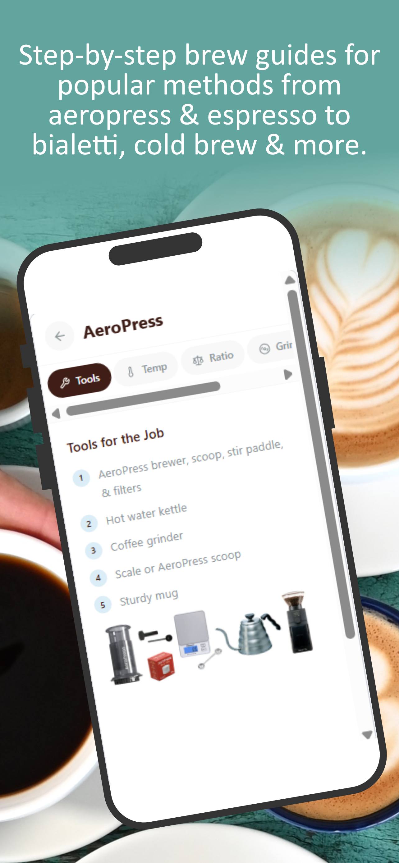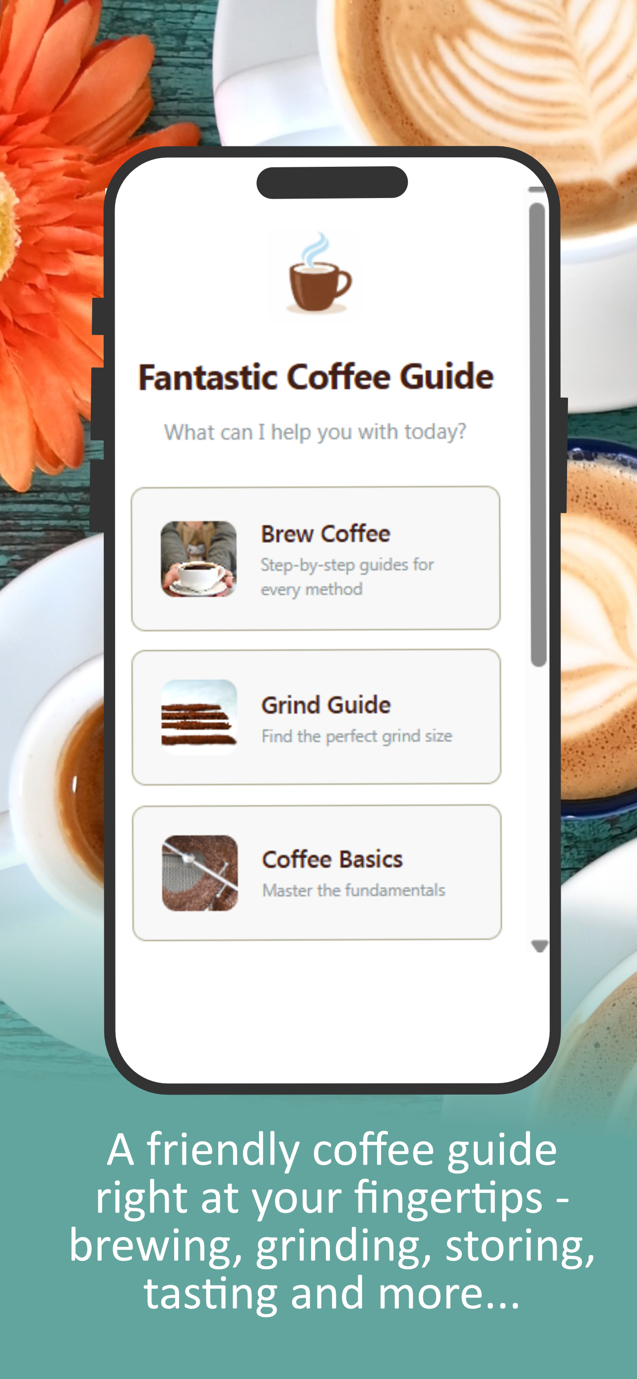 Brew better coffee at home. Step-by-step guides, grind help, and coffee fundamentals, all in one friendly app.